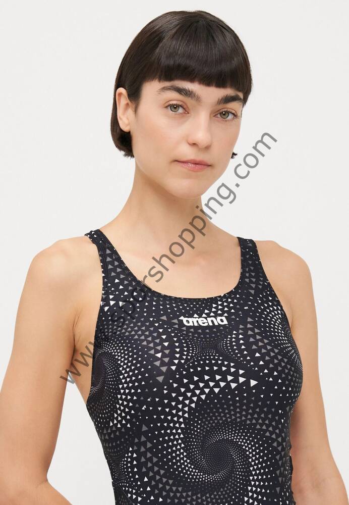 ARENA PRINTED FULL BODY KADIN ANTRENMAN MAYOSU 007909550 Arena Kadın Tam Kapalı Yarış Mayo – Geometrik Desenli Performans Mayo (Siyah)