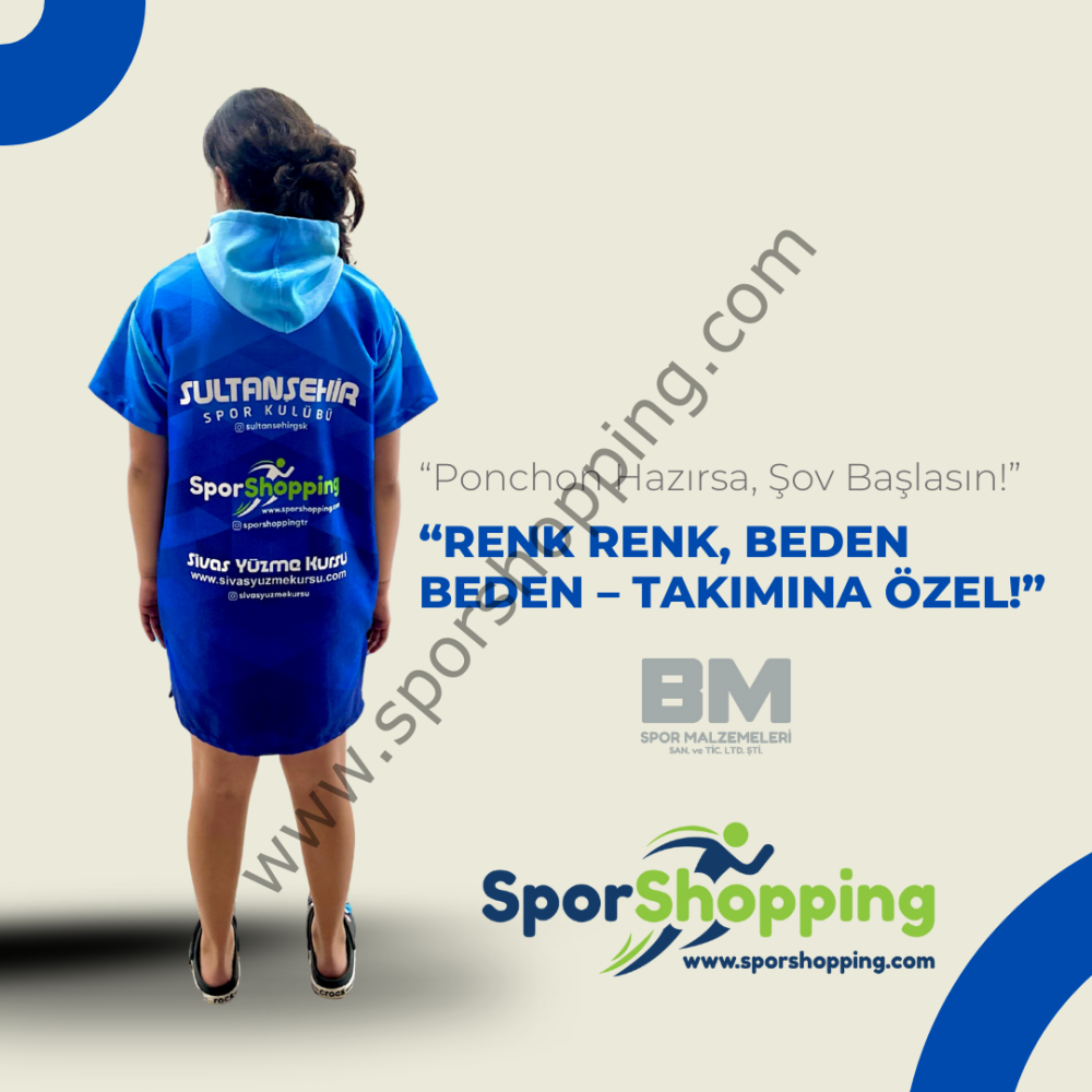 SporShopping’in sunduğu %50 poliester %50 pamuk havlu kumaştan üretilen kapüşonlu poncho, kulüpler ve sporcular için özel olarak tasarlandı!
