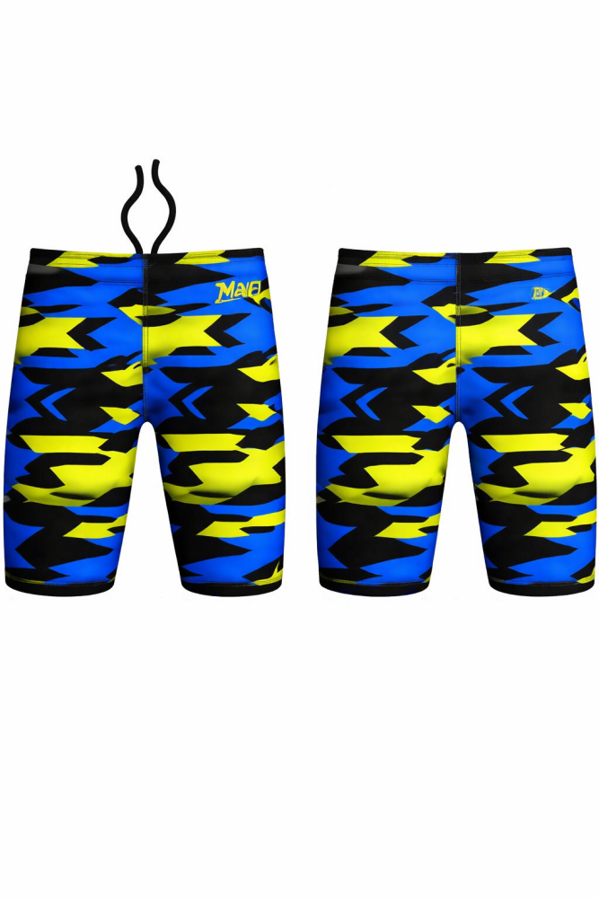 Mad Wave çocuk yüzücü jammer mayo, yüzme antrenmanları ve yarışlar için özel olarak tasarlanmıştır. Dinamik mavi–sarı geometrik deseniyle çocukların havuzda fark yaratmasını sağlar. Yüksek elastikiyete sahip kumaşı sayesinde hareket özgürlüğü sunarken, vücuda tam oturan kesimi ile suda maksimum performans elde edilmesine yardımcı olur.
