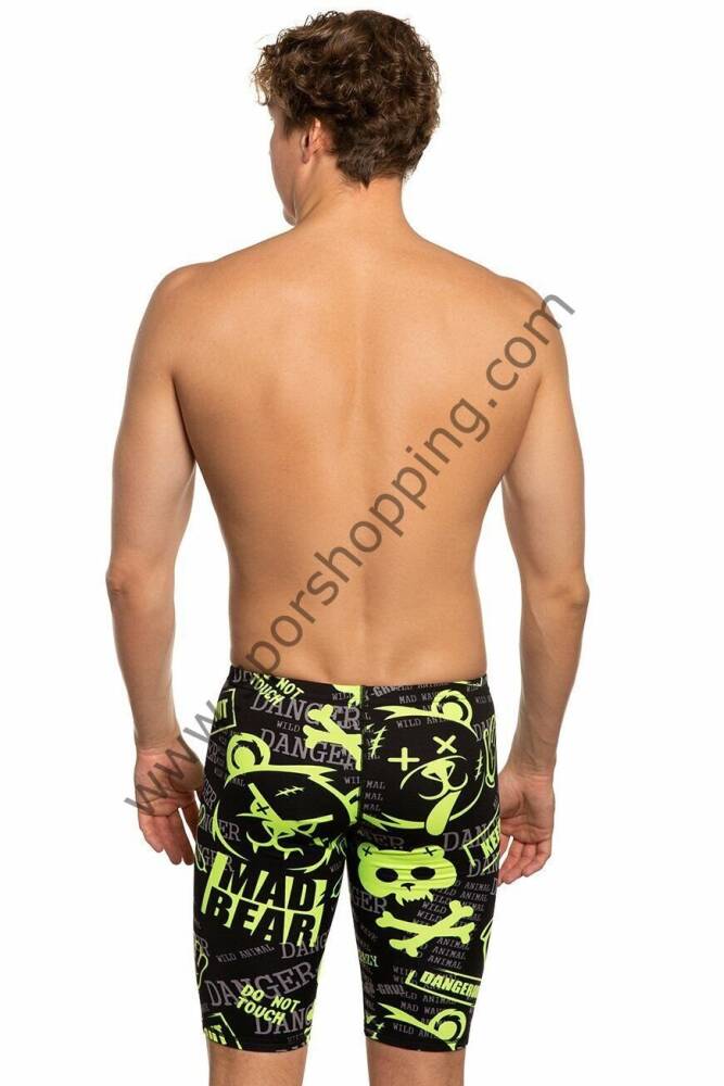 Mad Wave Drive PBT H5 – Crazy Bear erkek jammer mayo, eğlenceli neon yeşil ayı figürleri ve dikkat çekici “wild animal” temasıyla antrenmanlara tarz katıyor. Sadece görünüşü değil, dayanıklılığı da iddialı. %100 klor direnci sunan PBT kumaşı ile uzun ömürlü kullanım sağlar.