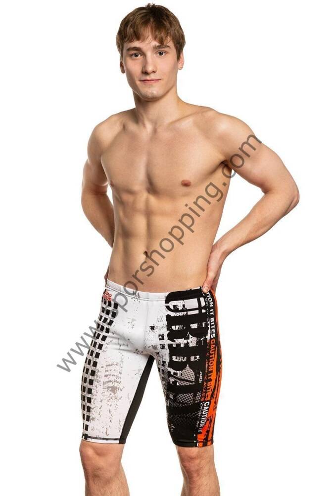 Mad Wave Drive PBT H7 Urban erkek jammer mayo, siyah-beyaz-antrasit grafikler ve turuncu detaylarıyla şık ve sert bir tarz sunar. %100 PBT kumaş teknolojisiyle geliştirilen bu mayo, uzun ömürlüdür ve antrenmanlarda maksimum dayanıklılık sağlar.