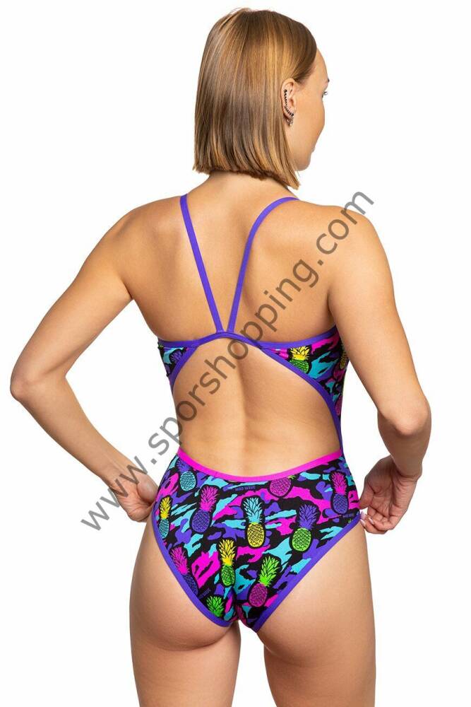 Daria PBT kadın yüzme mayosu, yoğun antrenman yapan profesyonel ya da düzenli yüzücüler için tasarlanmıştır. İnce askılar, yüksek bacak kesimi ve maksimum açık sırt tasarımı, suda maksimum hareket özgürlüğü sağlar. Ön astar sayesinde iç göstermez ve hafif toparlayıcı bir etki sunar. Tüm kenarları dekoratif biyelerle çevrilidir.
