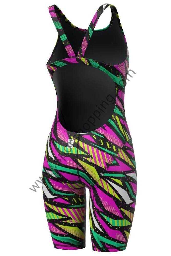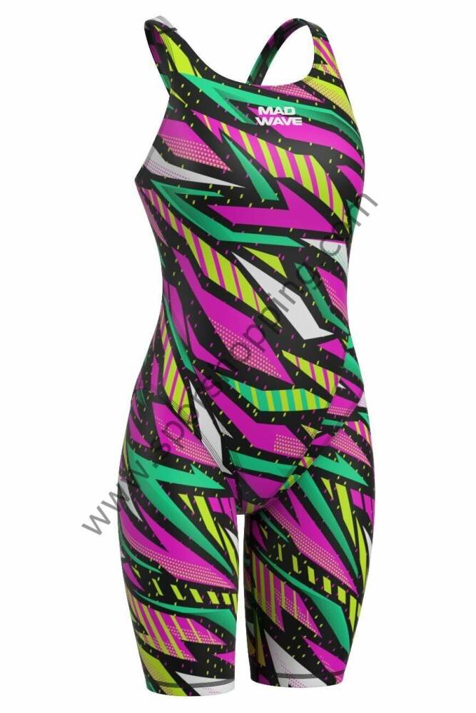 Mad Wave Bodyshell S9 kadın yarış mayosu, uluslararası yarışmalar için tasarlanmış yüksek performanslı, FINA onaylı bir modeldir. Şık ve enerjik geometrik desenleriyle dikkat çekerken, hidrodinamik yapısı ile su direncini azaltır, maksimum verim sağlar.