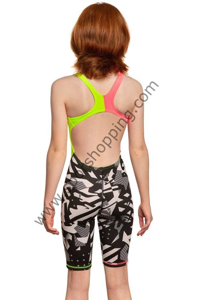 Diz boyu şortlu, atletik anti-klor Kneeskin tek parça mayo, uzun antrenmanlar için idealdir. Bu model, Training serisinden anti-klor kumaştan üretilmiştir. Bu kumaştan yapılan mayolar dayanıklı, hızlı kuruyan, uzun süre şeklini koruyan ve renk solmasına karşı oldukça dirençlidir. Yumuşak, esnek ve dokunuşu hoş olan Training kumaşı, klor ve tuzlu suya karşı 20 kat daha dirençli olup sık ve uzun süreli antrenmanlar için uygundur. Polyester mayo ayrıca UV ışınlarına karşı koruma sağlar.