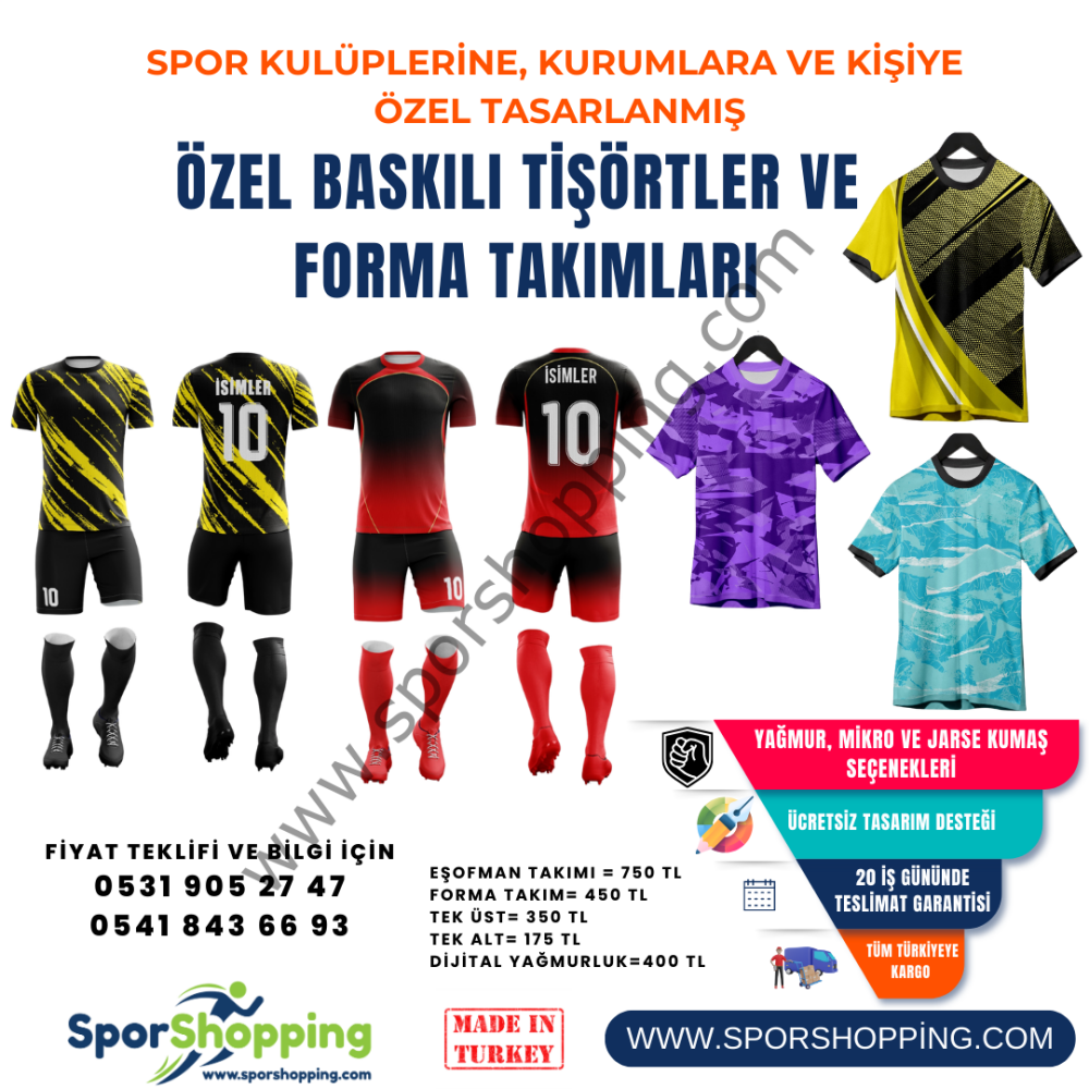 Takım ruhunu yansıtan, modern tasarımlar ve üst düzey kalite ile hazırlanmış özel baskılı tişört ve forma takımları!