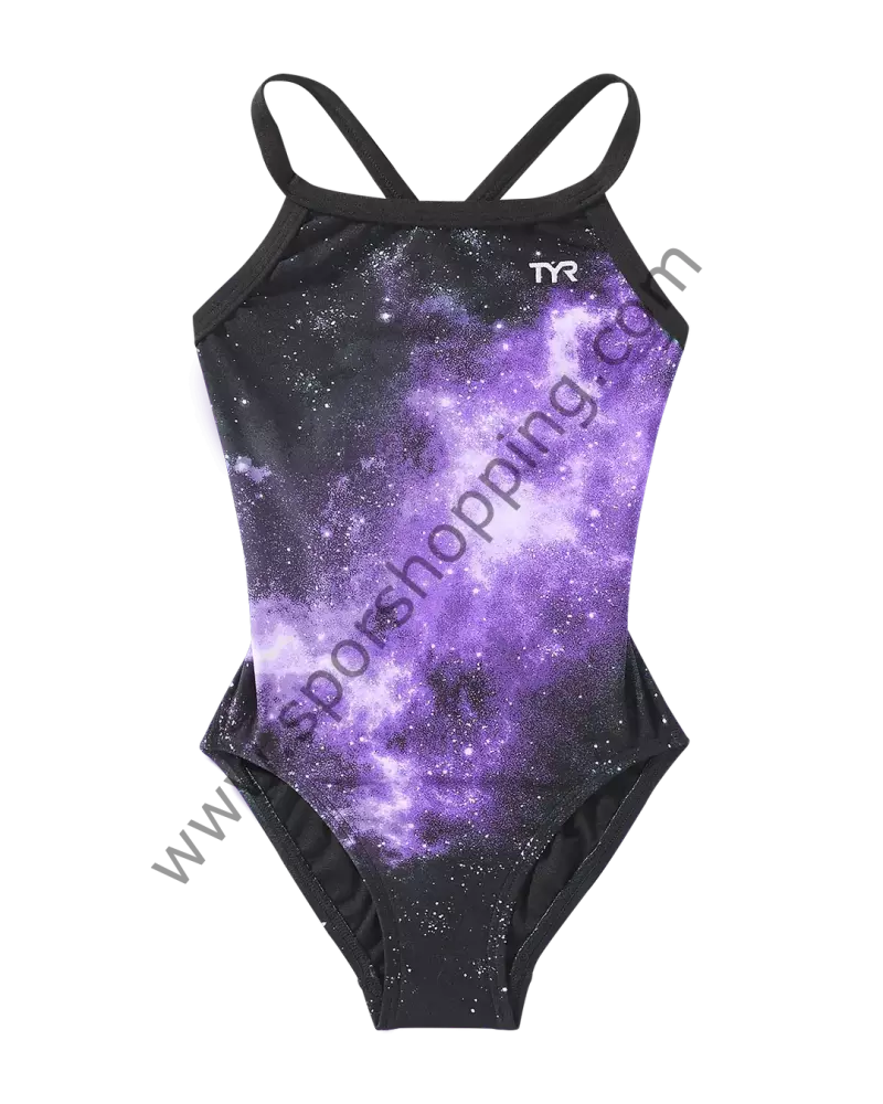 TYR’ın yüksek dayanıklılığa sahip yüzme ekipmanları arasındaki Mor Galaksi Desenli Kız Çocuk Mayosu, hem yüzme kurslarında hem de kulüp antrenmanlarında maksimum konfor sunmak için tasarlanmıştır. Siyah zemin üzerine işlenen parlak mor galaksi efekti, mayoya modern ve göz alıcı bir stil kazandırırken genç yüzücülerin havuzda kendine güvenle yüzmesine yardımcı olur.